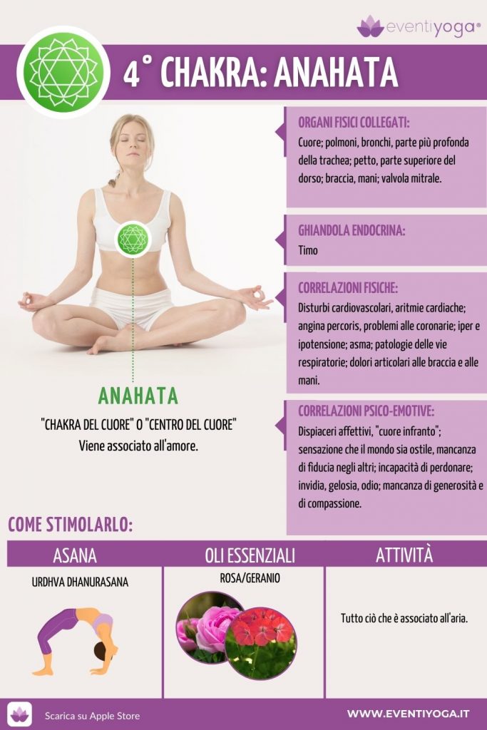 Quarto chakra dei 7 chakra, il chakra del cuore, è responsabile del sentimento di profondo amore, dell’ispirazione e delle emozioni positive. Il dolore e altri stati emotivi ad esso affini bloccano Anāhatacakra. Il blocco di questo chakra è accompagnato da dolore e da spiacevoli sensazioni nella zona del cuore. Il blocco dei chakra umani, soprattutto quello del cuore, richiede un grande sforzo per mostrare la volontà di superare questa condizione. Se anāhatacakra è bloccato cerca di superare l’apatia e il dolore e riguarda la tua vita dal profondo.