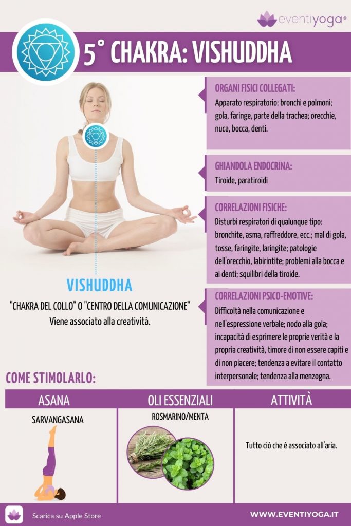 Quinto dei 7 chakra, il blocco si verifica quando una persona sta mentendo a sé stessa o ad altri. Bisogna essere onesti con noi stessi e verso gli altri. Il viśuddhacakra si trova a livello della gola e permette di esprimere le opinioni, comunicare con gli altri ed esprimere la propria vena creativa.