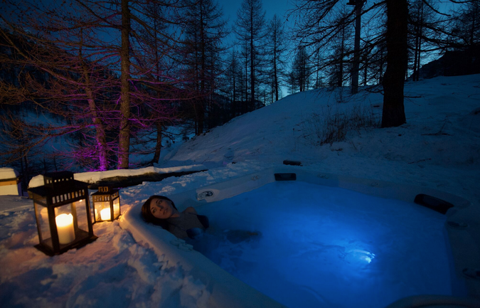 Il Centro Wellness è ubicato in un giardino d’inverno, circondato da vetrate con vista diretta sulle vette circostanti; massaggi, piccolo centro fitness e vasca idromassaggio panoramica per un relax di classe garantito.