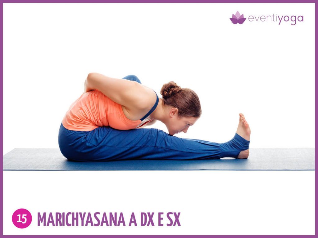Per non farsi male nelle torsioni è importantissimo riscaldare prima il corpo e sopratutto ricordare che prima di ruotare dobbiamo allungare. In ogni inspirazione ci allungheremo verso l’alto e in ogni espirazione entreremo in torsione. Questo è importantissimo per evitare dolori e problemi alla schiena.
