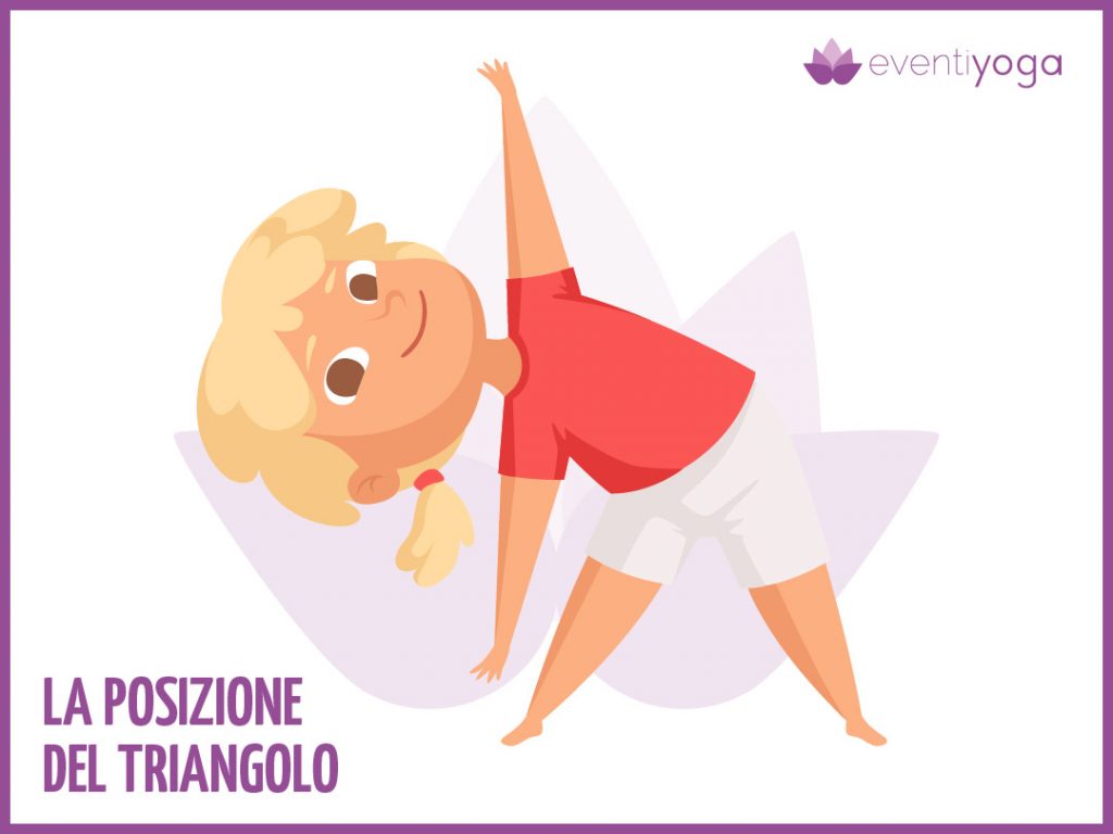 La posizione del triangolo evoca la forma geometrica usata spesso dai bambini nei giochi. Come si fa? Si stabilizza il proprio baricentro allineando anca e spalla. Anche in questo caso si lavora sull’equilibrio dei bambini e si fortifica la muscolatura, in particolare delle gambe.