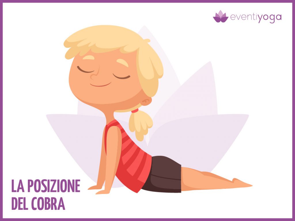 E ancora, tra le posizioni yoga per bambini più facili e divertenti, ecco la posizione del cobra, una delle più efficaci per aprire il torace e risolvere eventuali atteggiamenti scorretti della colonna. Si esegue mantenendo il collo ben dritto, i glutei contratti e i gomiti flessi. La respirazione è toracica.